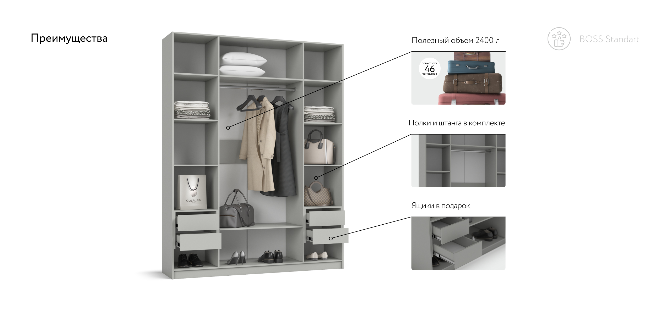 Коллекция корпусной мебели BOSS STANDART - новое направление сегодняшних трендов, создана для максимального комфорта и организации домашнего пространства.