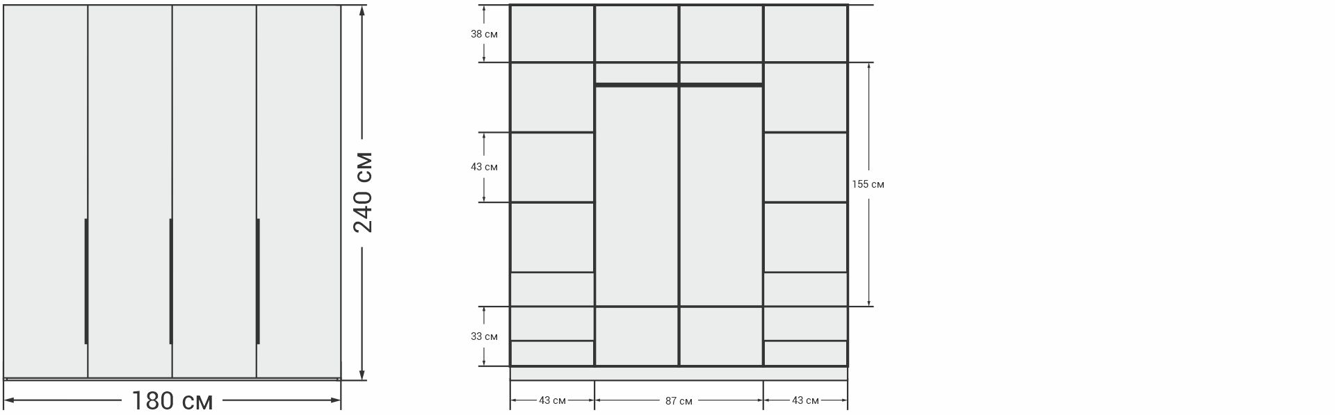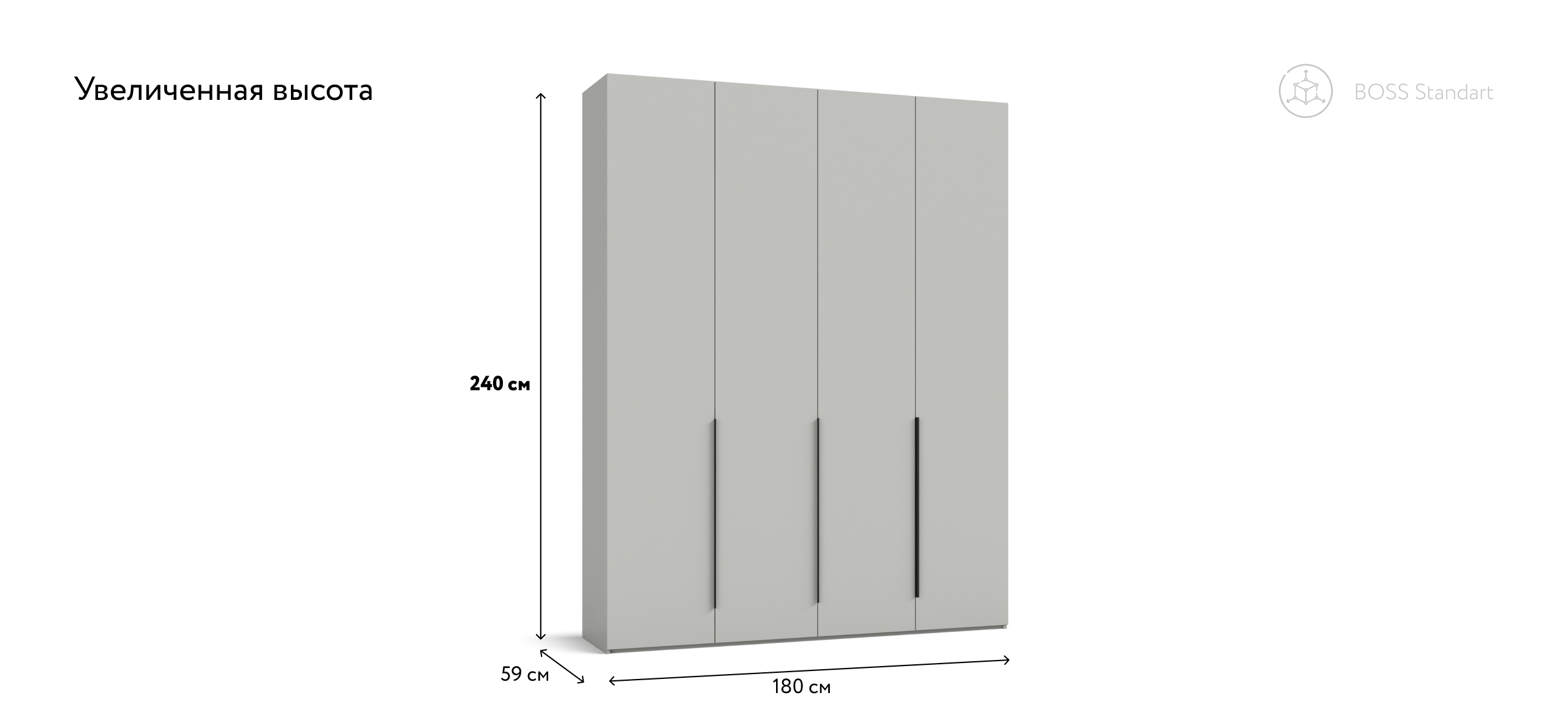 Увеличенная высота 240 см - правильная высота в "потолок" для визуального увеличения пространства