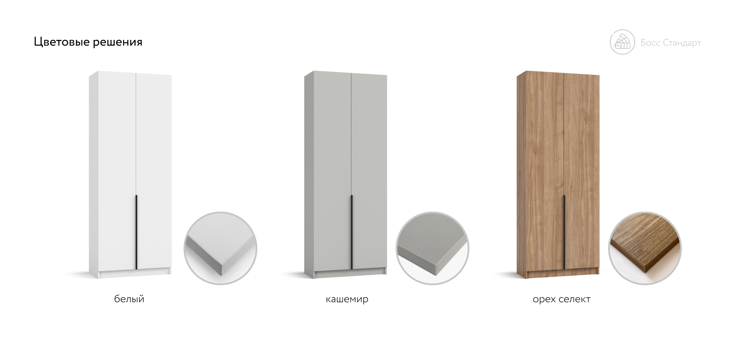 Корпус изготовлен из безопасной ЛДСП Е1 с износостойким покрытием, которое надолго сохраняет цвет и фактуру. Босс Стандарт 80 создаёт ощущение порядка и лёгкости, превращая небольшую спальню или студию в гармоничное, «дышащее» пространство. Выберите шкаф, который организует вещи безупречно и подчёркивает статус интерьера.
