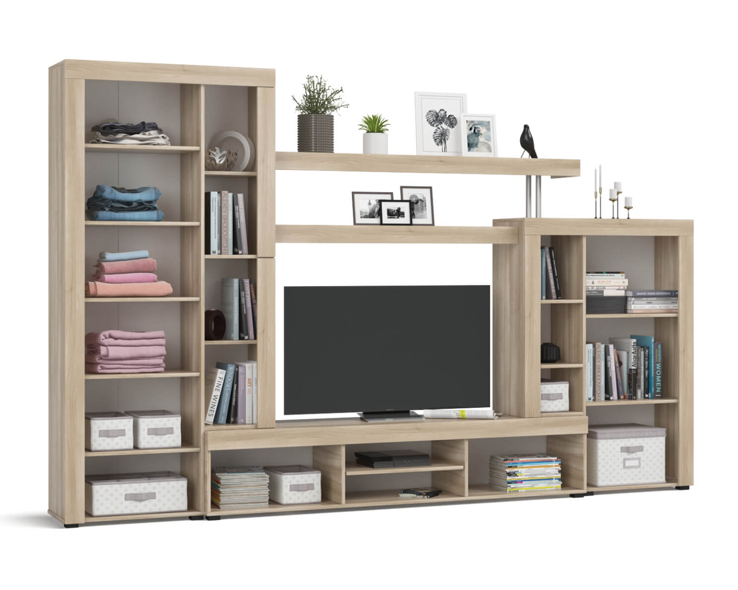 Стенка является компактной системой хранения, в которой найдется место для множества предметов: мультимедийной техники, книг, одежды и столовых принадлежностей.