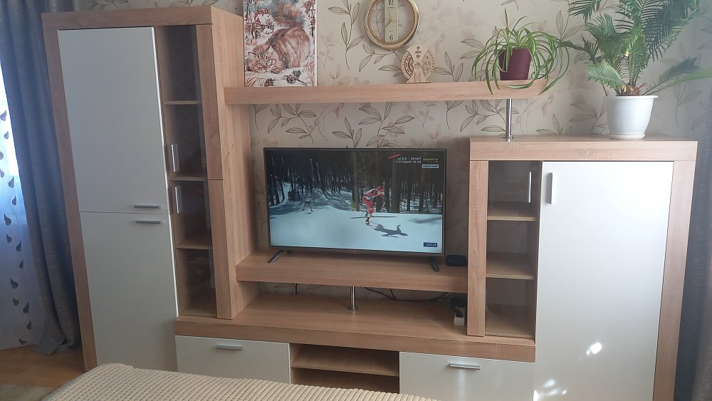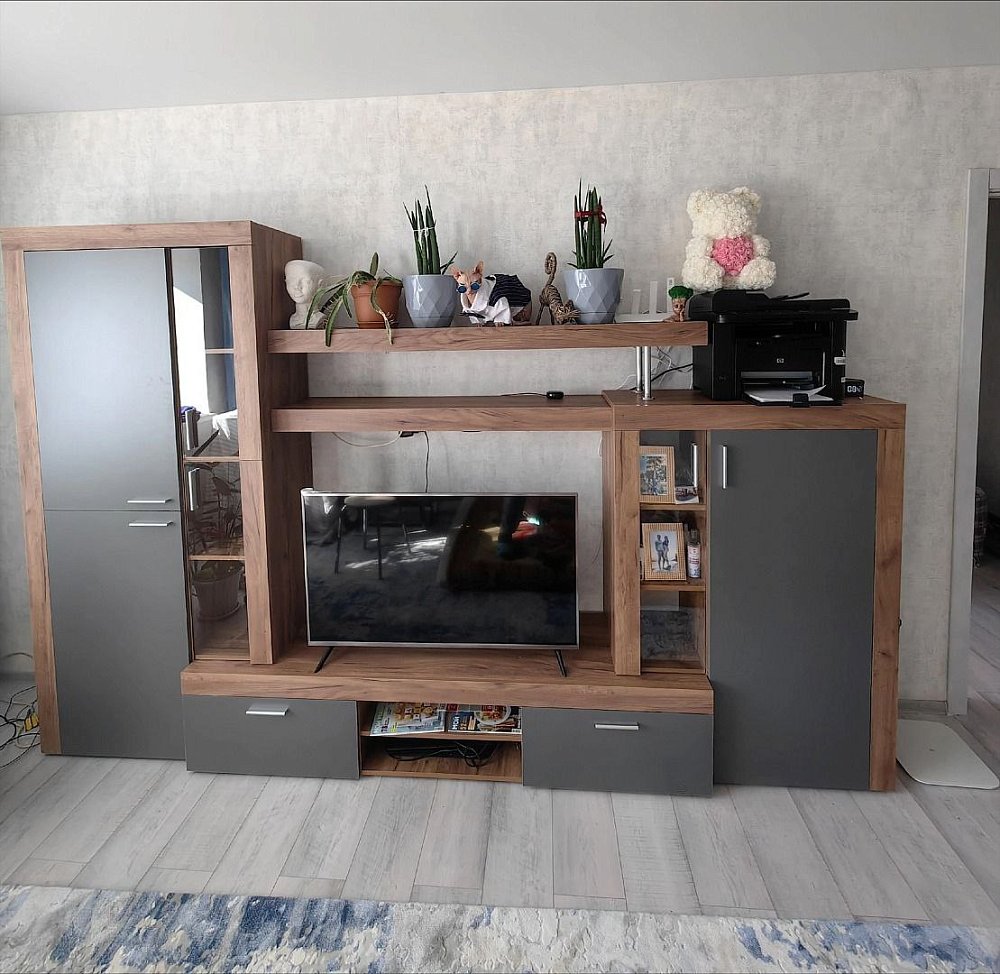 Приобрели больше года назад данную стенку, очень понравилась всей семье, до сих пор нарадоваться не могу. Удобная, практичная, современная, вписалась в интерьер на отлично. Рекомендую к покупке
