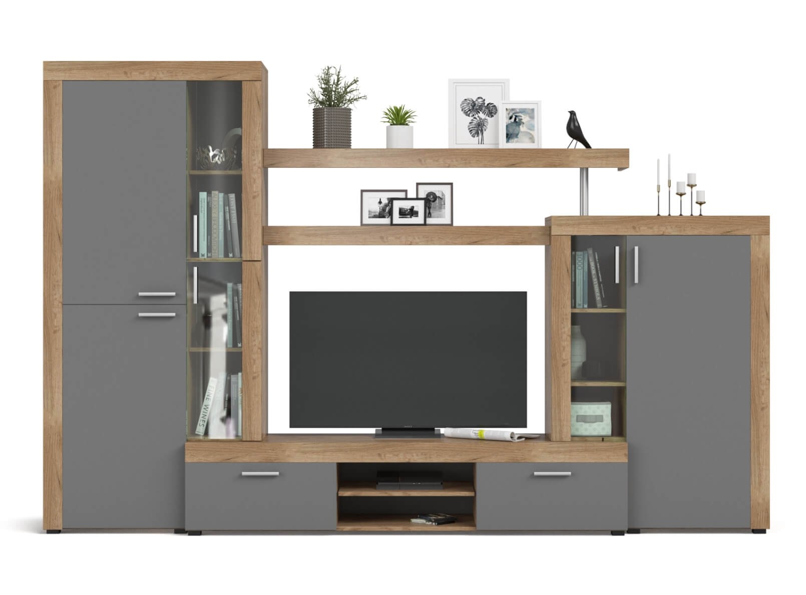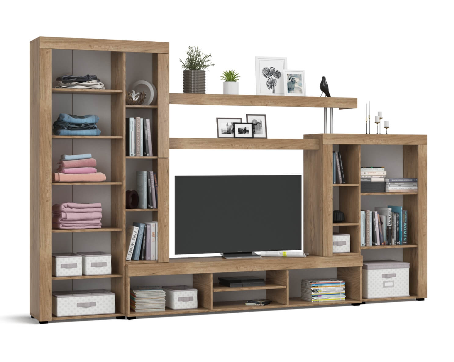 Стенка является компактной системой хранения, в которой найдется место для множества предметов: мультимедийной техники, книг, одежды и столовых принадлежностей.