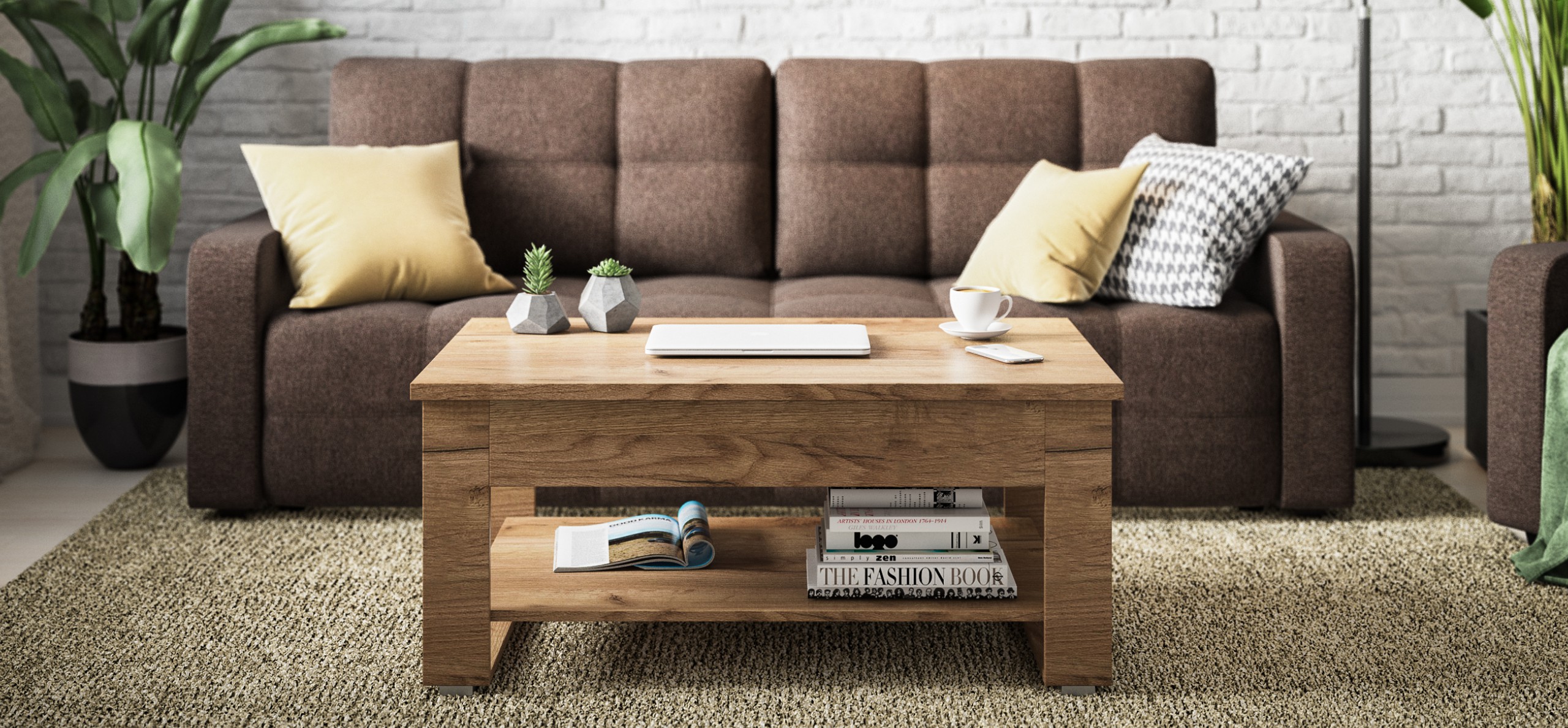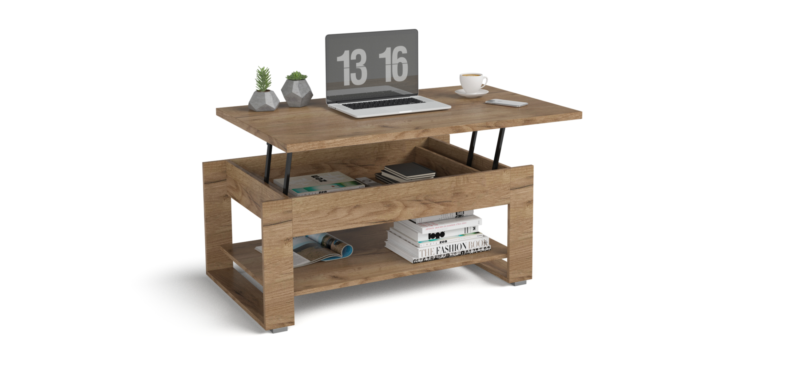 Стол журнальный LUX – практичное приобретение, выполняющее двойную функцию. В сложенном виде он служит компактным журнальным столиком, с ящиком и вместительной полкой для хранения повседневных мелочей. В разложенном виде он превращается в полноценное рабочее место, позволяющим вам работать не вставая с вашего любимого дивана.